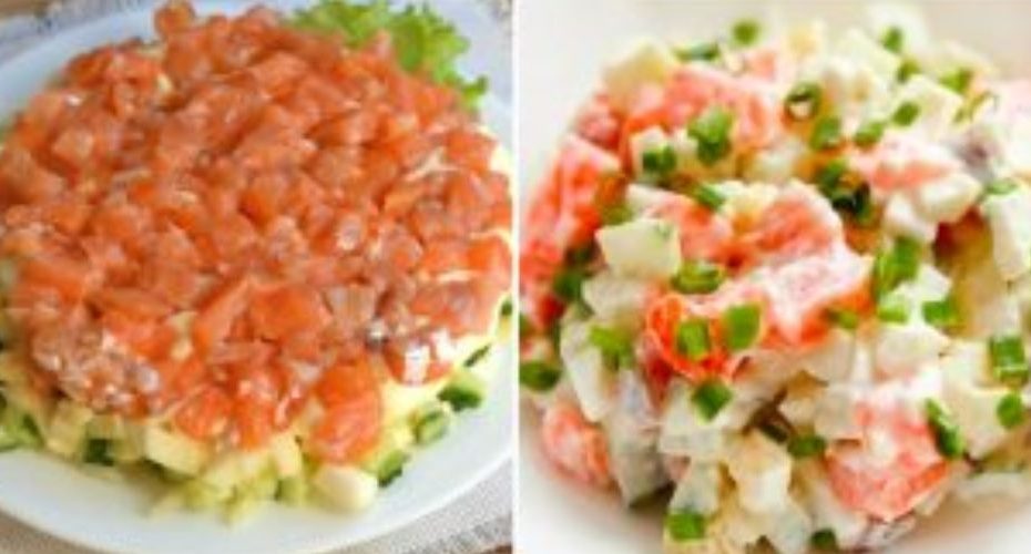 Recept na novoroční salát s červenou rybou. Je lehký a velmi chutný.