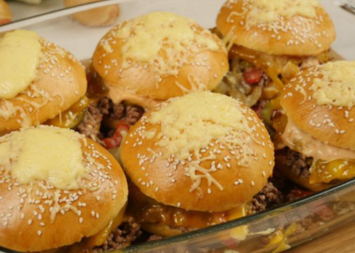 500 g mletého masa 150 g rajčat, pasírovaných 4 révová rajčata 100 g okurek (okurky) 9 burgerových bochánků (sezamových) nebo hamburgerových 200 g sýra, strouhaného… Lire la suite »Tento burgerový kastrol je nejen neuvěřitelně chutný, ale také perfektní, pokud chcete dělat burgery pro 6 lidí zároveň 😃